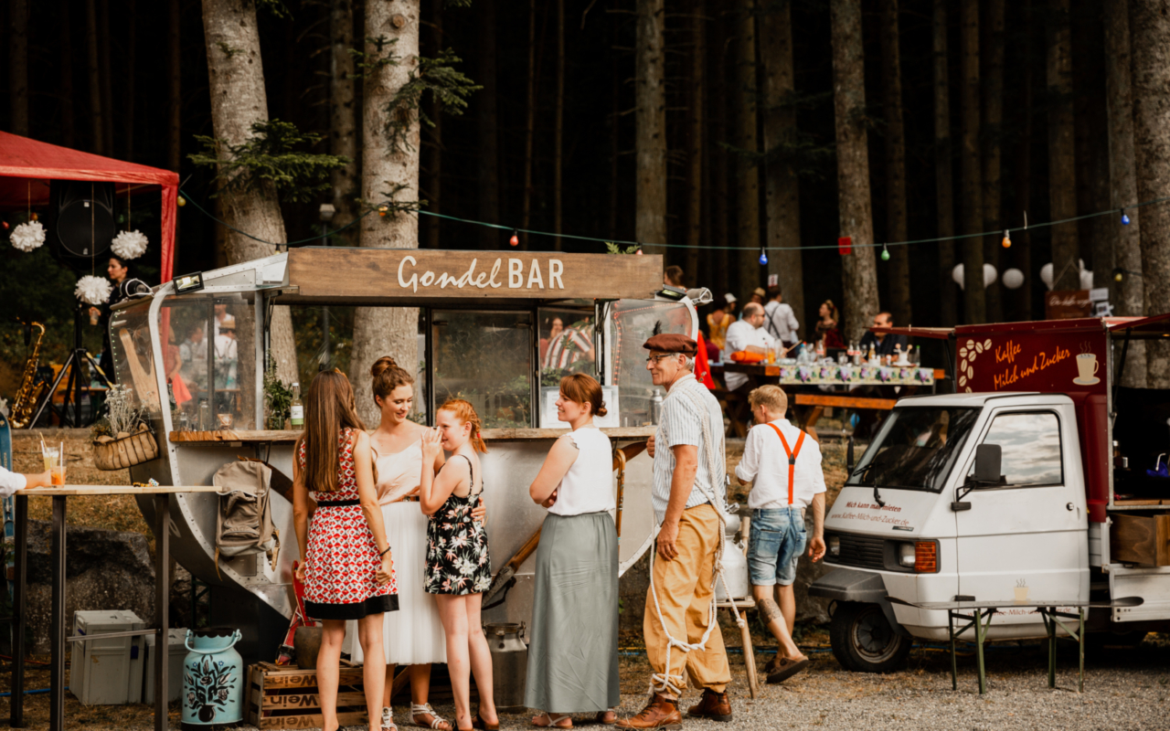 Mieten Sie unseren Getränkeservice, unsere Holztische, Stühle die Gondel-Bar oder alles zusammen für Ihre Event.